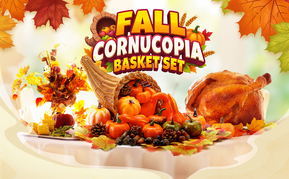 Combination Products for Easy Decoration: our cornucopia basket comes with coordinating cornucopia decorations; This combination simplifies your decoration process as all the components complement each other; It is a good curated ensemble for your Thanksgiving cornucopia decorations